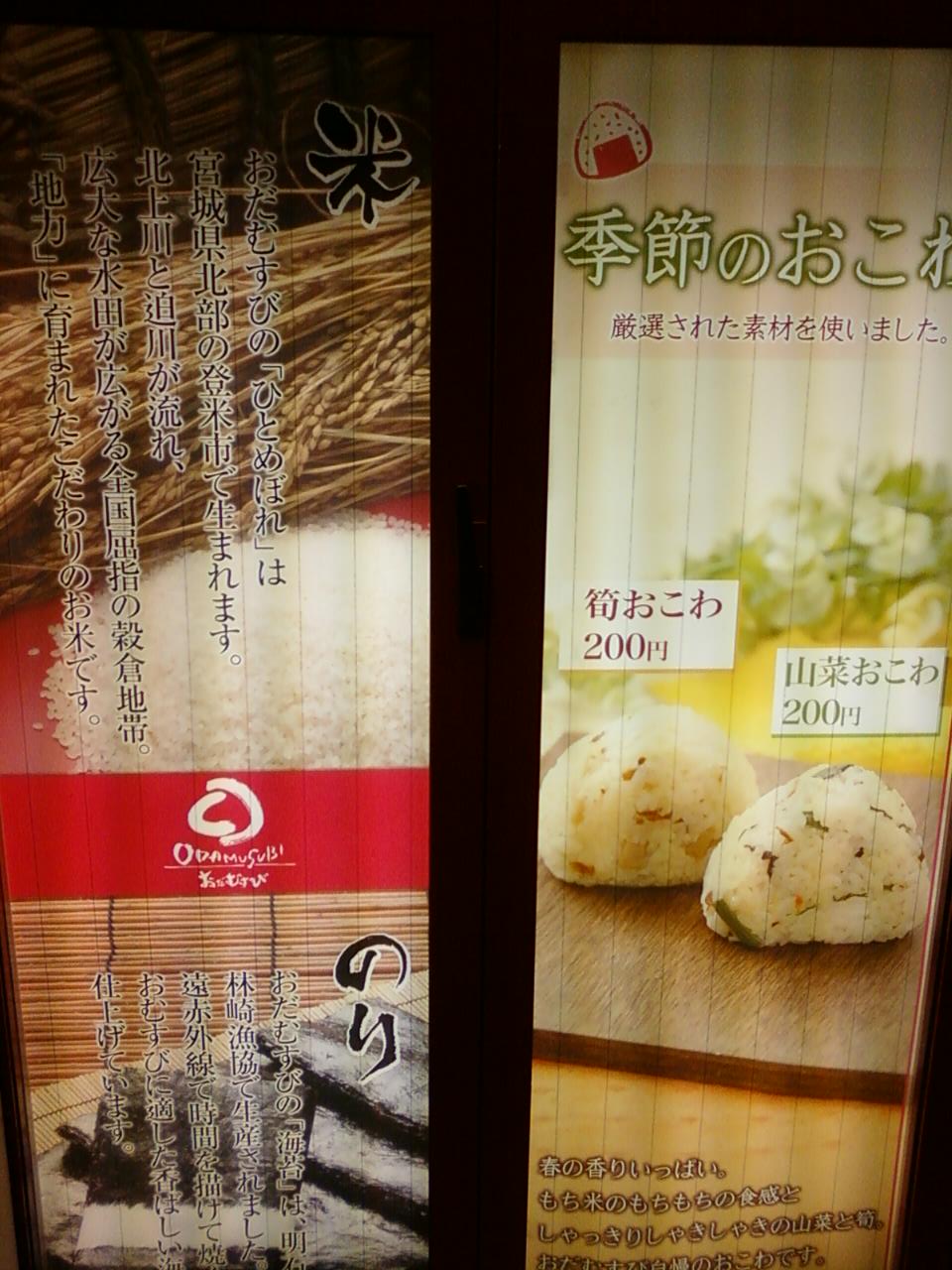 ここのおだむすびさんは新宿駅西口地下の交番裏手、小田急ハルクさんも近い、小田急エース北館にあります。おだむすびさんは、やさしくてほのかに甘いお米の味や手作り感のあるふわっとしたにぎり方が好きでとても気に入っています。それもそのはず、材料のお米が良い物をつかっています。ちょっとしたお惣菜を買えるのも良いですよね。