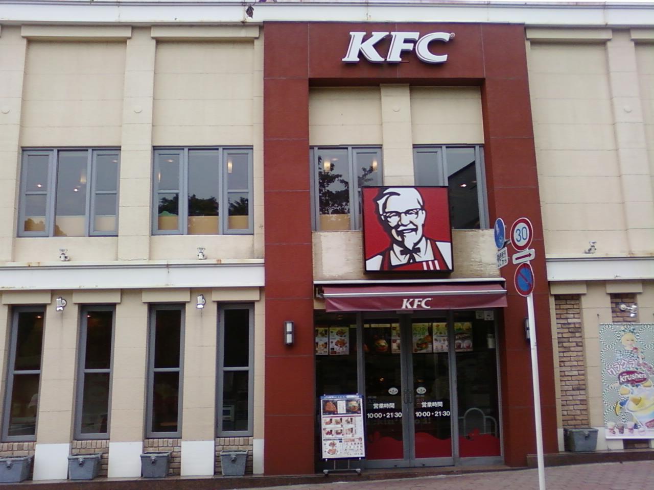 ここのケンタッキーフライドチキンさんは、小田急小田原線および相鉄線海老名駅から五分くらいのとこにある、ビナウォーク三番館のフードコート内にあります。フードコートの中庭側です。フードコート内は自由に座ることができ、音楽も結構大きな音でかかって時間帯にもよりますが学生が多いので落ち着きません。ここには他にも数店舗入っているので、ここのケンタッキーの窓口は小さいですが、フライドチキンが好きな若い客が多く、ここで一番人気といえると思います。