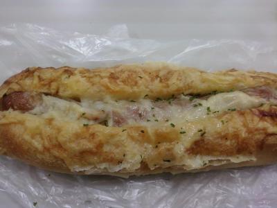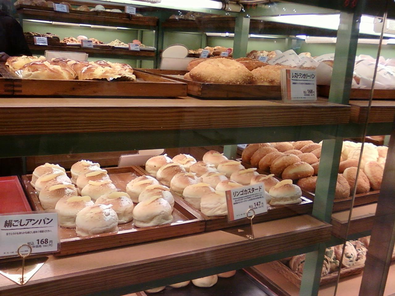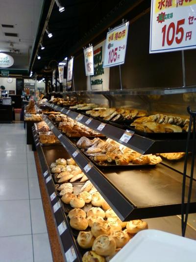 ここのブレッドバスケットさんはJR武蔵境駅南口、イトーヨーカ堂の東館地下一階にあります。お店という感じのスペースではなくて、壁沿いにパンが並んでいる感じで、ちょっと人通りのほこりが気になるかな。通路にパンが置いてある感が否めません。パンは105円のものが多く激安です。水曜日が特売日だったようです。