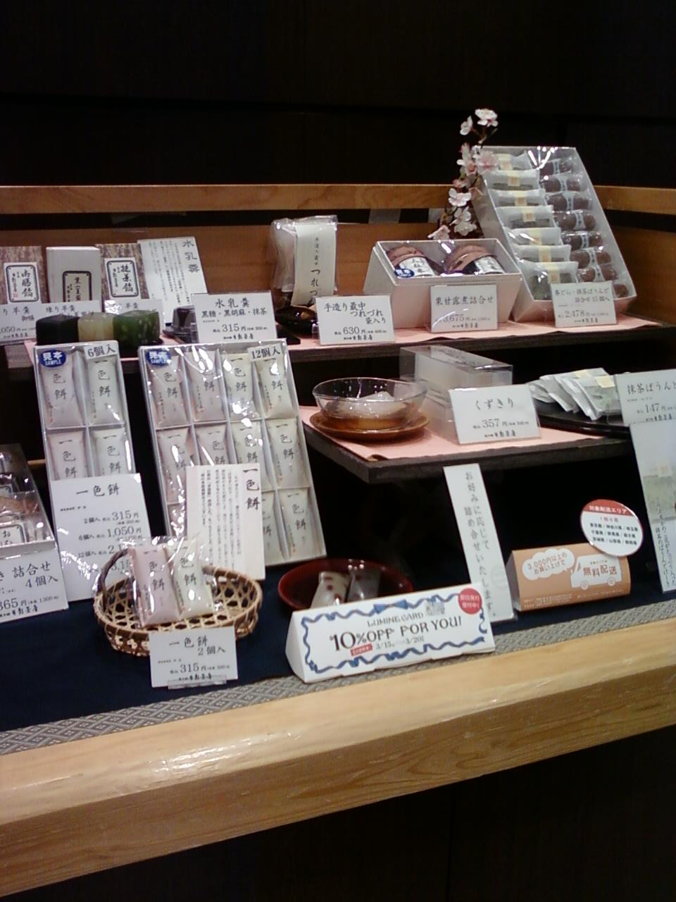 ここの日影茶屋さんはJR大船駅に連結しているルミネウイングの三階、お菓子屋さんが集合していフロアの角にあります。このお店は大きく2つに分かれていて、ひとつはフランス語が目立つ洋菓子系、もうひとつは伝統的ないかにもお茶屋さんのお菓子という感じ。この二面性が両方違和感なく調和しているのが良いですね。どちらもとてもおしゃれなパッケージです。