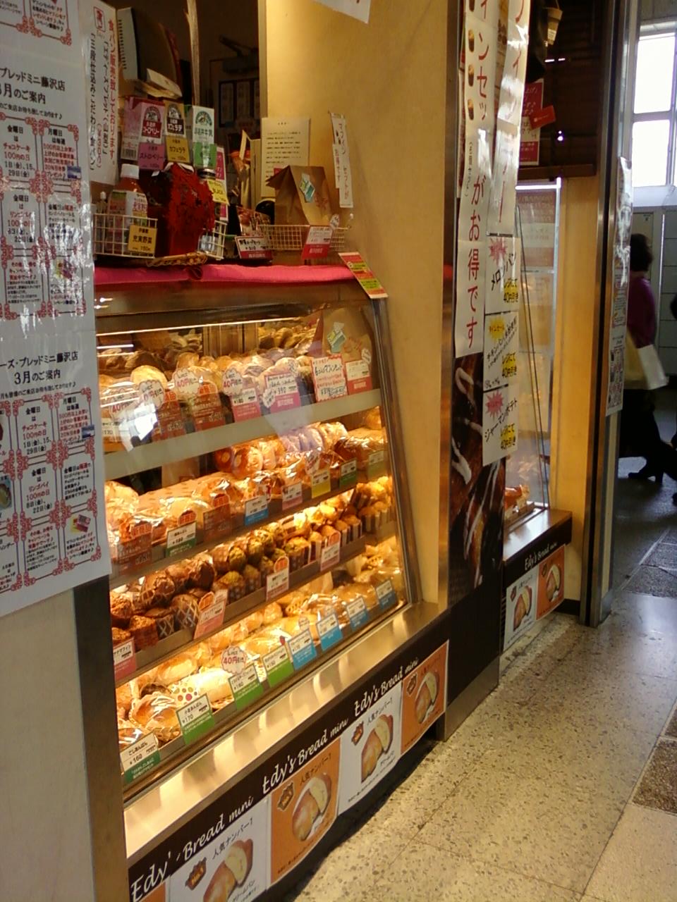ここのエディーズブレッドミニさんは、JR大船駅の南口に向かうコンコース、駅構内にあります。小さくてなかなか気づかなかったのですが、知っている人はとっても重宝に思っていると思いますよ。電車の行きや帰りのちょっとした時間に、ここでおいしいパンを簡単に手に入れられて、とてもありがたいです。接客も明るくていいですよね。