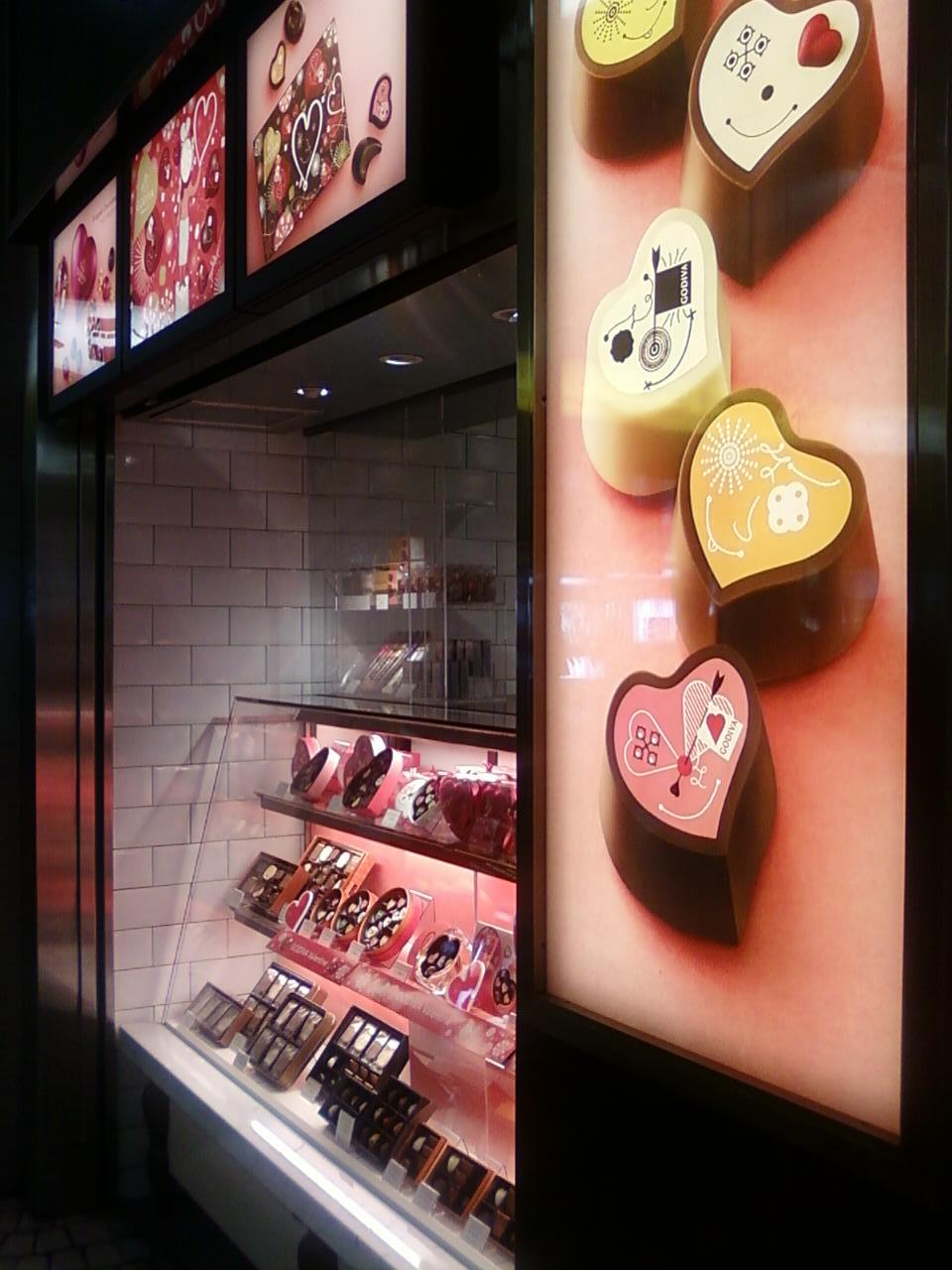 ここのゴディバは新宿駅西口構内にあります。足早に行きかう人たちの中で、このお店の美味しいスイーツやチョコレートドリンクがとっても可愛いお店のイラストや色とともに目に飛び込むとなんだが幸せな気分になります。でも飲み物などは氷が多い割に高いですね。本場ベルギーでのチョコレートの価格を知っているので、全体的に割高なのが残念です。