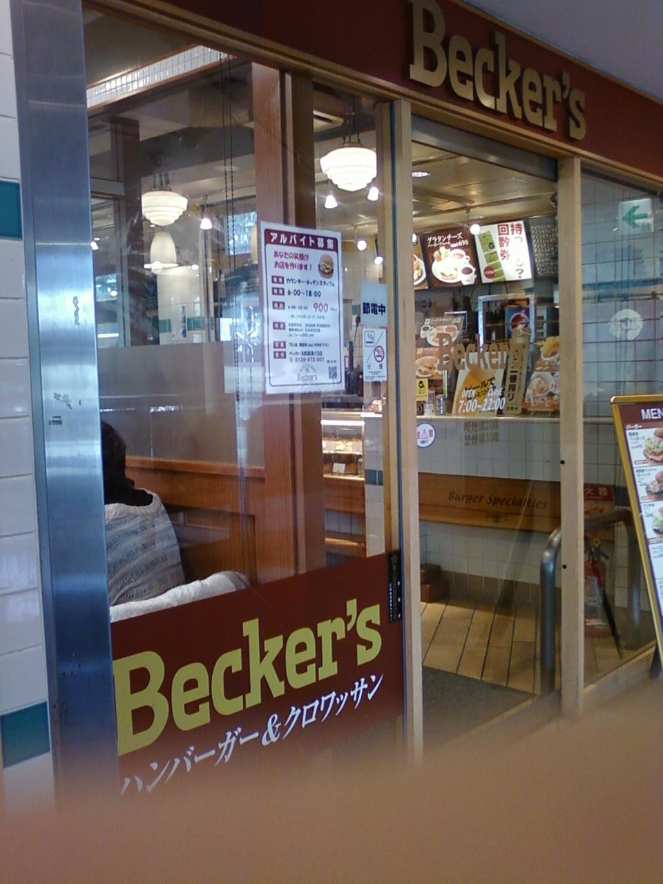 溝の口のベッカーズは、JR武蔵溝ノ口駅の丸井方向に向かうコンコースの途中、右奥にあります。ちょっとわかりづらいかもしれません。ただ駅から来れば道中雨にぬれませんよ。店内は少し老朽化が目立つかな?という感じです。あちこちに汚れなどが気になります。ただメニューは出来たてがおいしいし、粗びきペッパーガーリックバーガーなどがおすすめです。セットきちんとした食器で、サラダつきで食べれるのがうれしいです。