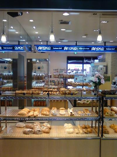 このHOKUOさんはJR登戸駅の南武線改札の目の前にあります。ただ、1階のスーパーに直行する人が多いので、2階のパン屋さんに気付いていない人も少なくないかも。このあたりではパン屋さんがほとんどないのでとても助かります。イートインは南武線の改札が見える席作りになっていて、ちょっとファストフードのお店のようです。コーンクリームピザ、たっぷりきのこのピザなどがお勧めです。