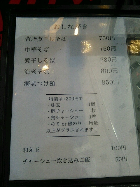 ここの一陽来復さんは、JR中央線の武蔵境駅北口を出てすきっぷ通りという商店街を左に少し曲がったところにあります。商店街のメイン通りではないので、知らない人も多いかもしれません。背脂煮干しそば、海老そばなどお店のカラーとも言えるラーメンの品々です。今回はテイクアウトで背脂煮干しそばをいただきました。少し匂いが個性的でしたが、おいしくいただきました。