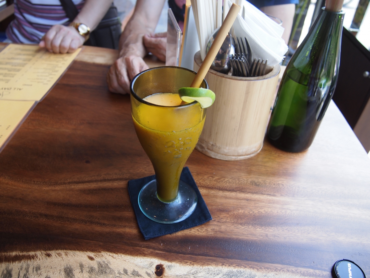 とりあえず、車の少なそうなチャンプアン橋の方へ移動。プラダラムの前のカフェでお茶することに。ホテルまで集金にくるなら、ここに居てもそんなに変わらないでしょ。〇〇にいる。と連絡。