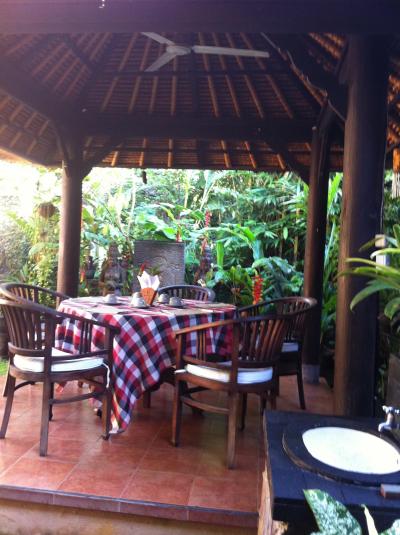 立地はう~ん・・・残念ながらイマイチ。マス村の近く。ウブド王宮まで15分くらいです。バトラーつき専用車を頼めば、それもカバーできますよ。