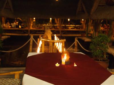夜に行ったので周りの様子がよくわからないんですが、川床のようになった上に