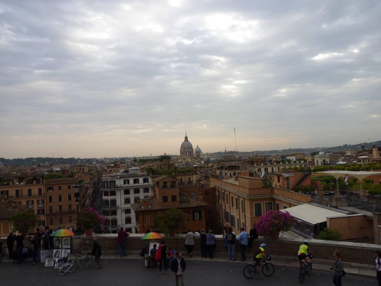 広場は、階段と教会の間にあって、ここから見る景色はローマの街が見渡せます。