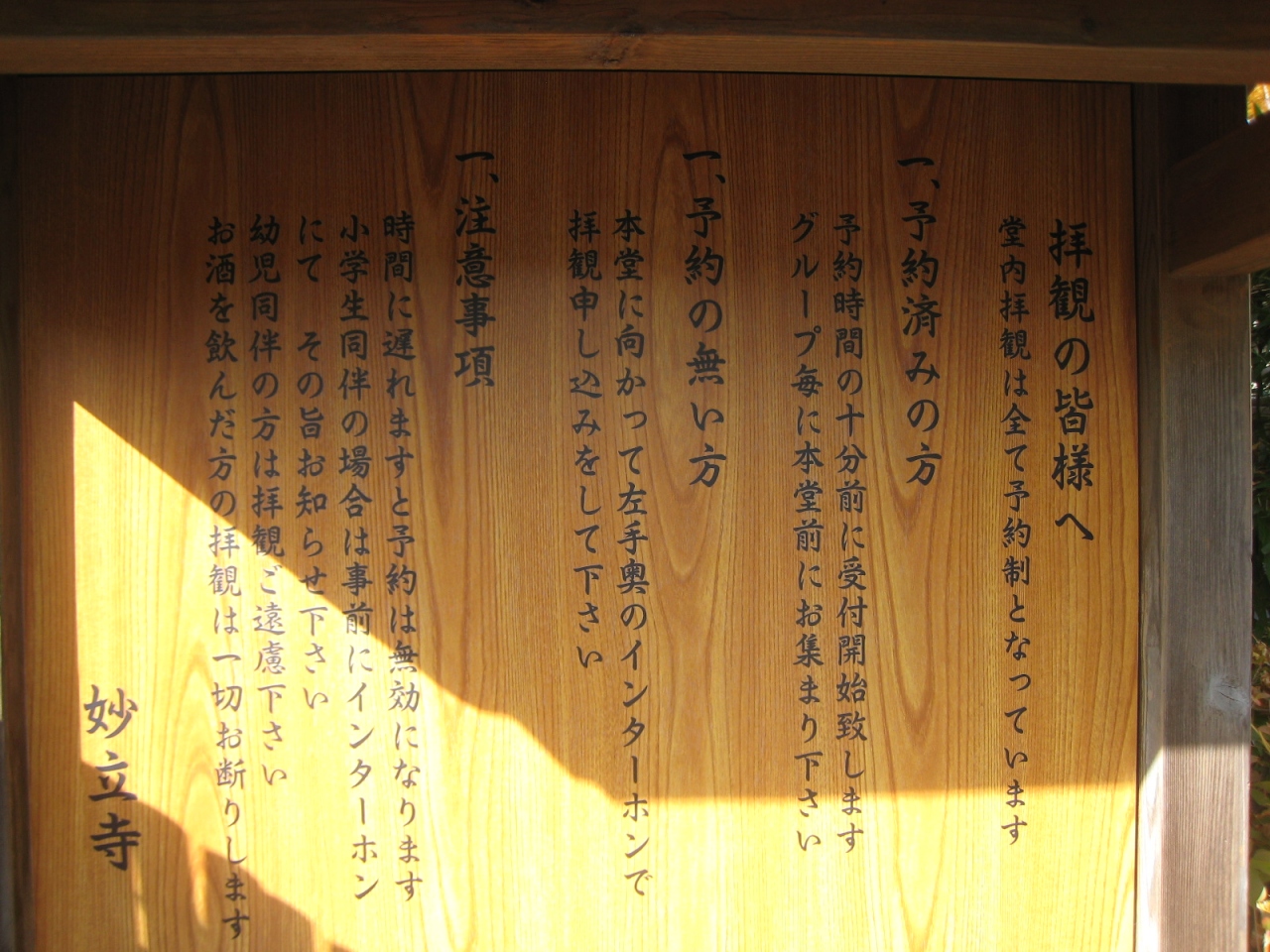 お寺横にインターフォンがあって、見学の申し込みをすると12時からのグループに入れてもらえることになりました。
