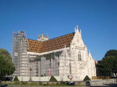 残念ながら修復工事中でしたが、幾何学模様の屋根が素敵でした。