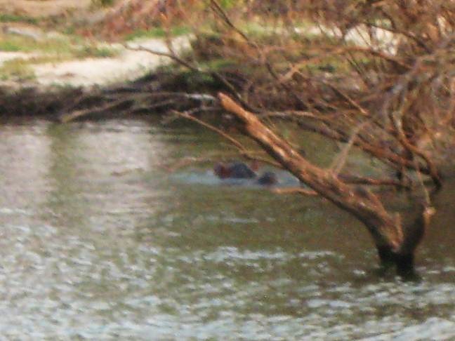 カバはしょっちゅう川の中から顔を出していました。その他、見たことのない鳥もいました。