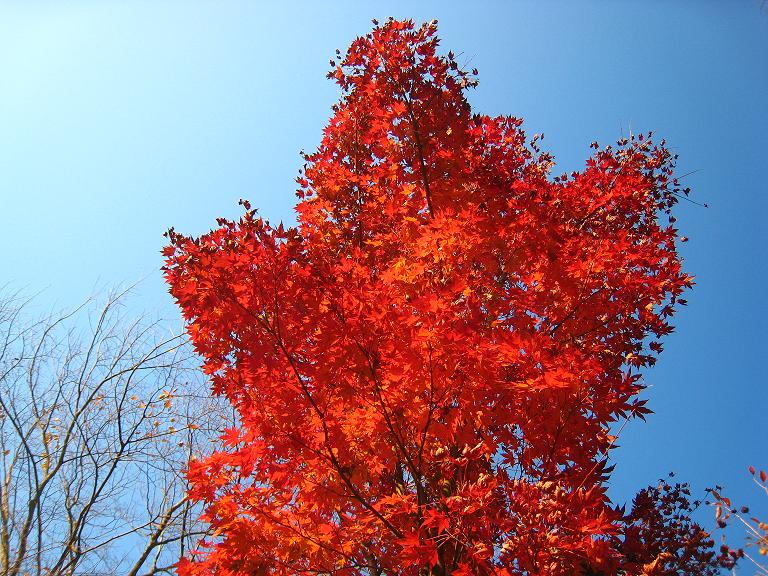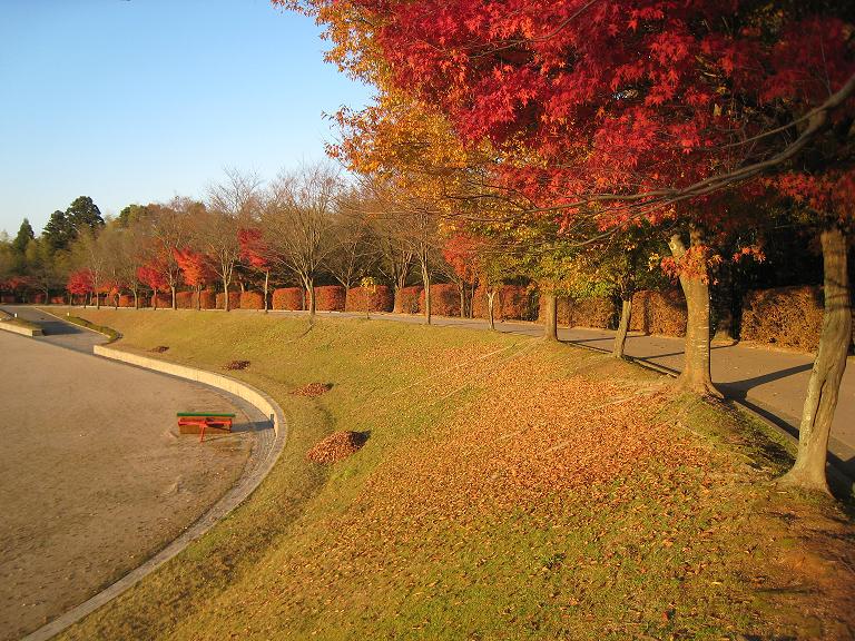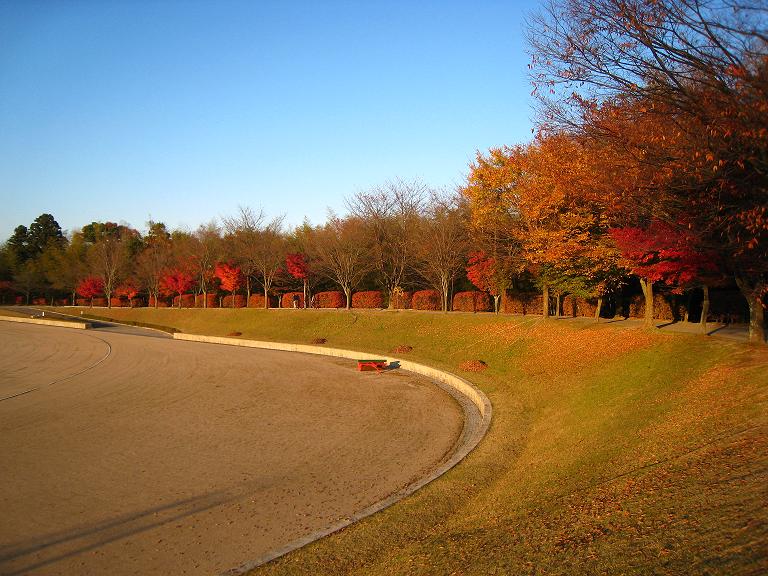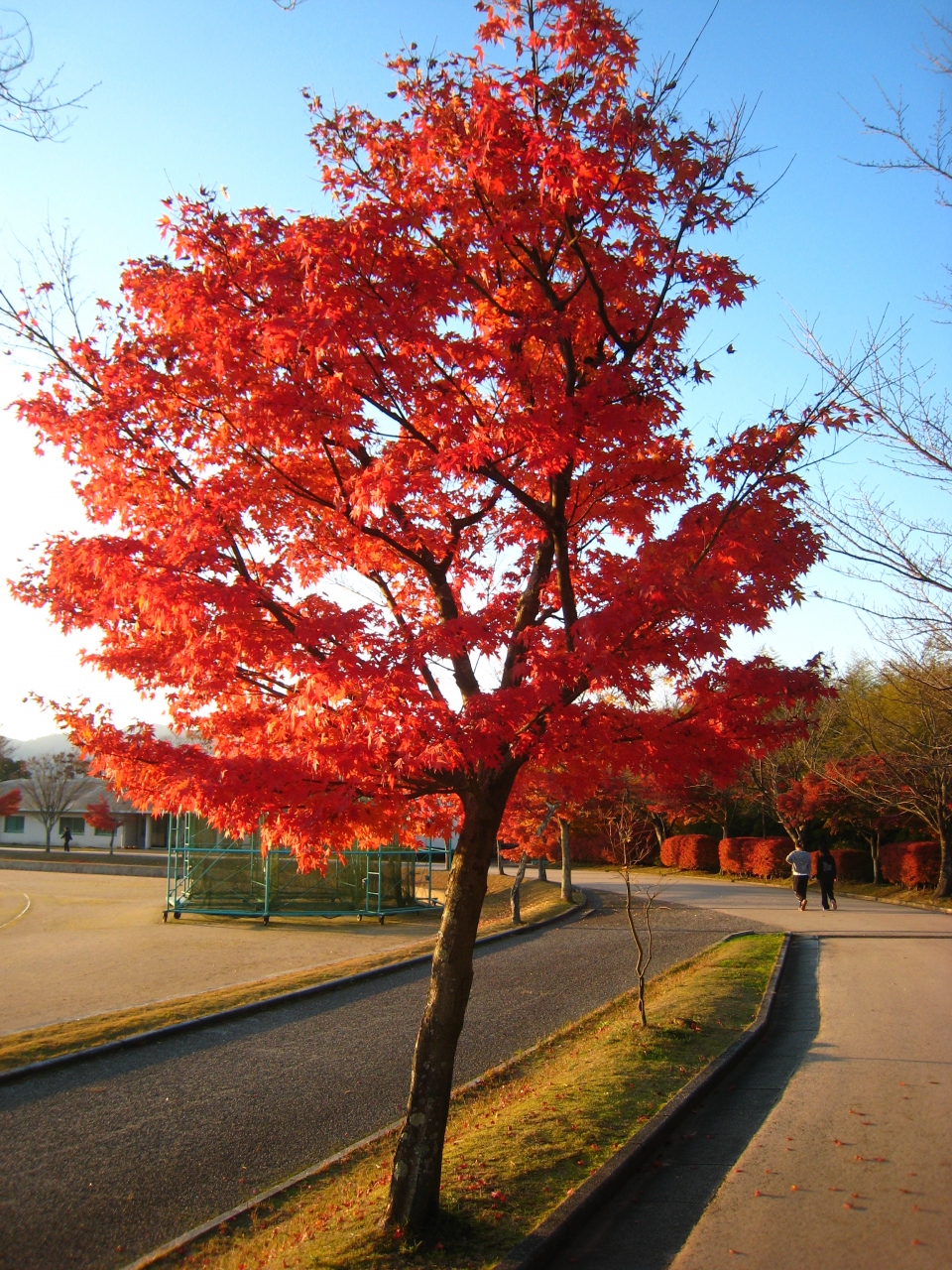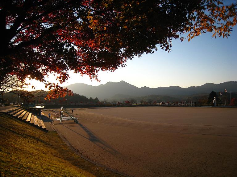 グランドの周りにある紅葉が紅く染まりとってもきれいです。