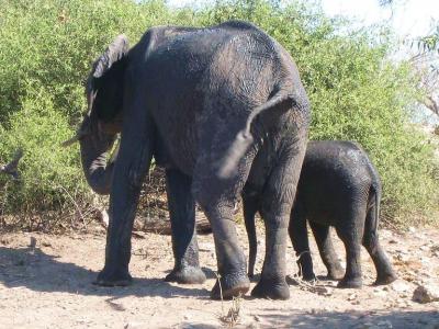 木陰で寝そべるカバ、顔の長い猿、キリン、クドゥ、インパラ、ホロホロドリ、イボイノシシ等がいましたが、ゾウの親子が近くで見られ、小ゾウが鼻を車の方へ近づけてきたことが印象的でした。- 旅行時期