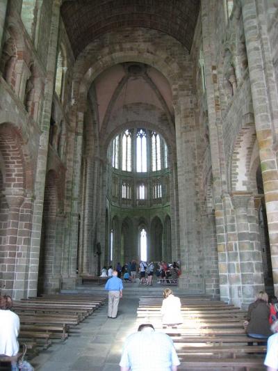 聖ミカエル(フランス語でミッシェル)に捧げられた石の修道院。切り立った岩山のフォルムに沿って建造された聖堂や回廊、19世紀まで増築を繰り返し、ロマネスク、ゴシック、ノルマンと様々な様式が混在する特異な修道院です。