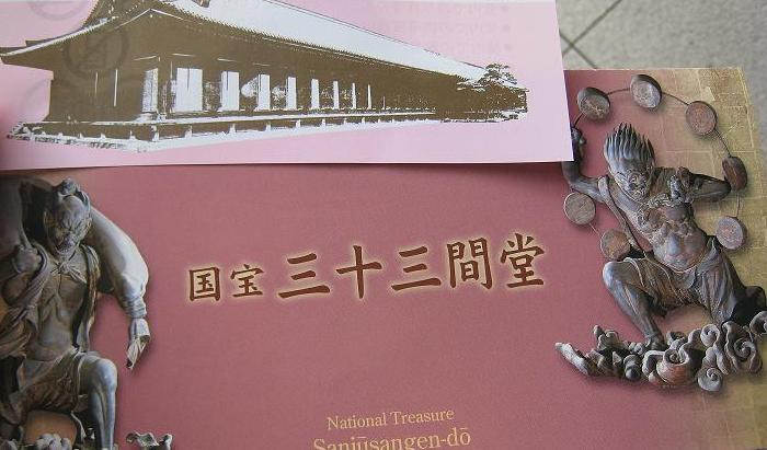 後白河法皇はひどい頭痛に長年悩まされていました。その頭痛平癒を願って三十三間堂が建てられたといわれています。毎年1月の成人式近くの頃には、頭痛封じの法要が行われます。また、お土産コーナーには、頭痛封じのお守り等も売られています。