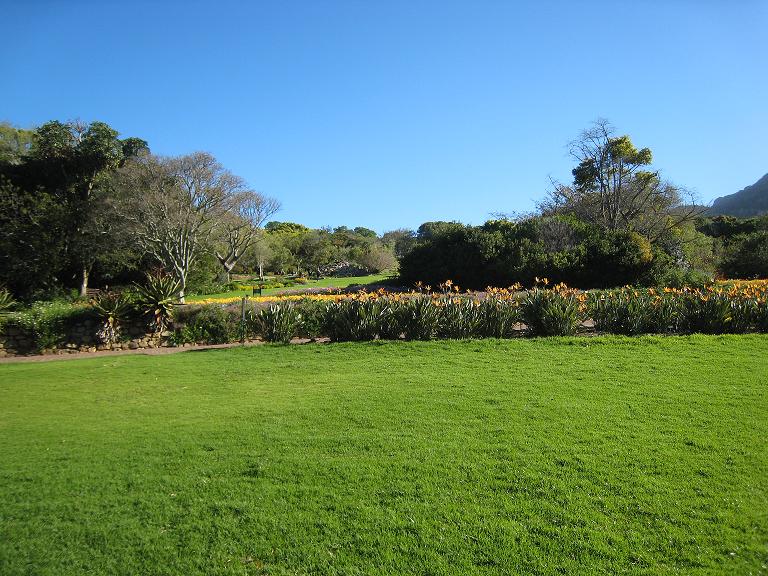 喜望峰への一日ツアーのなかでカーステンボッシュ植物園を訪れました。入園料40ランドはツアー料金に含まれていました。1時間ほどの自由行動です。手入れされたいろいろな植物が色とりどり咲いています。周りを山に囲まれ、自然豊かな場所です。