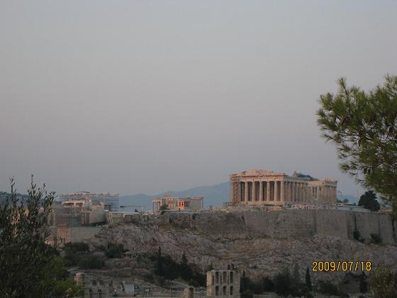 夕方、日が暮れる前にフィロパポスの丘へのぼり、アクロポリスを眺めてみましょう。奇跡ともいえるシーンが見れました。夕日が山で隠れてしまう直前の数分間、パルテノン神殿のそばにある女神アテナの2体が夕日に照らされオレンジ色に光って見えました。偶然なのか、わざとそうした造りにしているのか未だ謎です。