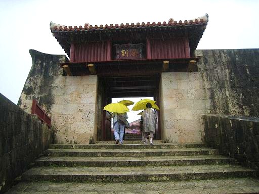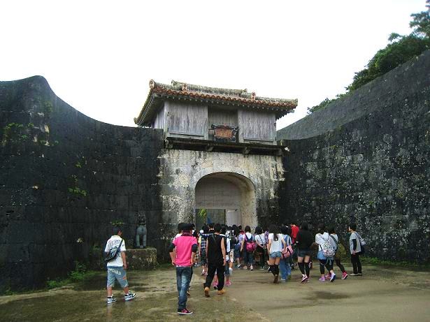 海沿いの道路を走っているとひときわ目立つ建物があります。朱色を基調とした琉球の門の奥に、御菓子御殿があります。