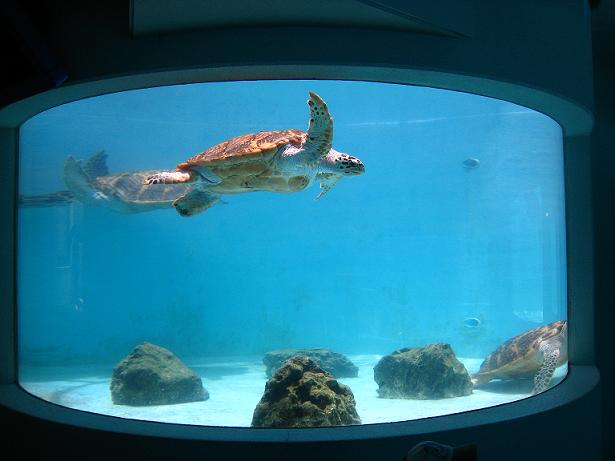 ウミガメは地上からも見られますが、地下へ行くと、ウミガメの泳いでいる姿が見られます。水槽に自然光が入ってきていたということもあり神秘的でした。- 旅行時期