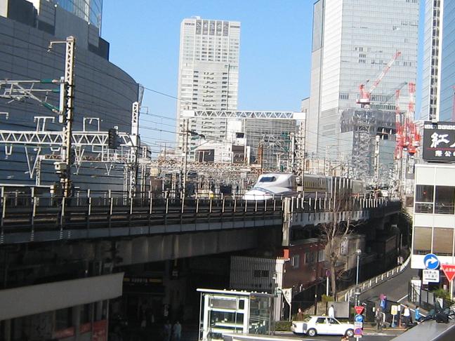花壇等もある憩いの場のような所があり、有楽町駅方面を見ていると新幹線が通過していきます。東京駅がすぐ近くなのでスピードも弱まっているようでした。- 旅行時期
