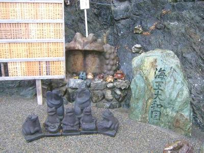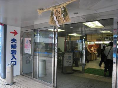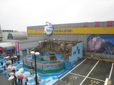 バスに乗り夫婦岩へ向かいました。バスを降り、歩道橋を歩いていると「二見シーパラダイス水族館」が見えました。マイクで話す声が聴こえ、なにやらトドのショーをしているようです。道路からショーが見られるなんて…いいのかな?