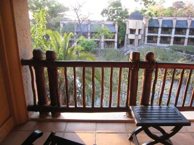 客室は庭に面した部屋で、ベランダ付きでしたがドアを開けると蚊が入ってきそうなのであまり開けませんでした。朝起きると、ベランダに何か動物の糞が落ちていました。猿が木に登り鳴いている姿が見えました。- 旅行時期