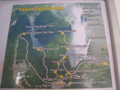 ジンバブエから歩いて行きました。イミグレから500m離れた場所に国立公園への入り口があります。チケット売り場で一人20ドルを支払い、いざ滝へ!