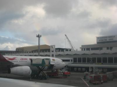 この時期モーリシャスは雨期で、晴れていても急に雨が降ってはすぐ止むといった天気です。空港のそばに虹がでていました。