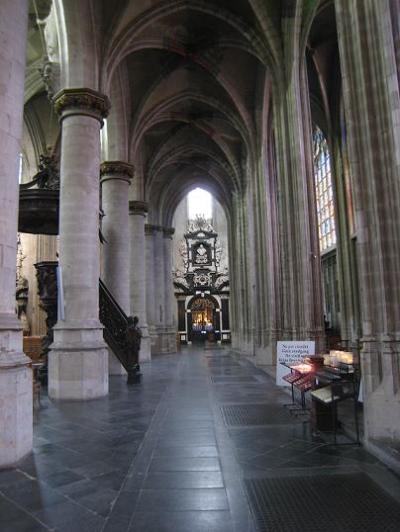 プチ・サブロン広場からレジャンス通りを挟み、真正面にあるのがノートルダム・デュ・サブロン教会です。大きく目立つのですぐにわかります。入口の装飾が素敵です。中へ入るとステンドグラス越しに光が射し、見事でした。