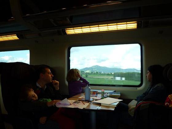電車内は4つの座席が向かい合っていて真ん中にテーブルがありました。- 旅行時期