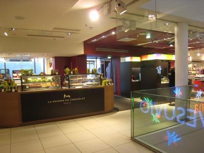 ラファイエットのキッチン用品等を売っている建物の0階(日本式でいう1階)のエスカレーター近くに、ラ・メゾン・ドゥ・ショコラとピエール・エルメのお店が入っていました。以前はなかったのですが、新しくできていました!