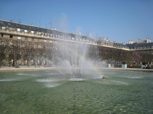 噴水の周りを歩いていると、虹が見える場所があることに気付きました。