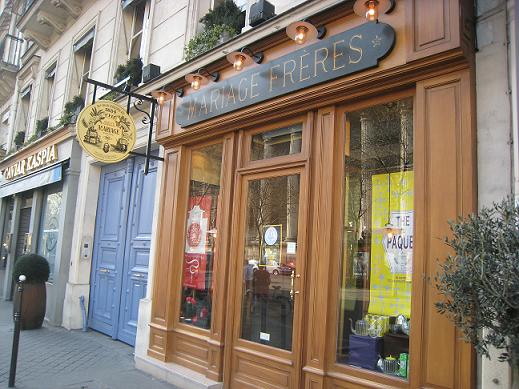 ラファイエット、プランタンを通り左折しトロンシェ通りを歩き、マドレーヌ寺院の裏手側に出ました。そこから右側に歩いていくとマリアージュ・フレールがありました。ここにもあるんですね。しかし今日は日曜なので閉まっていました。