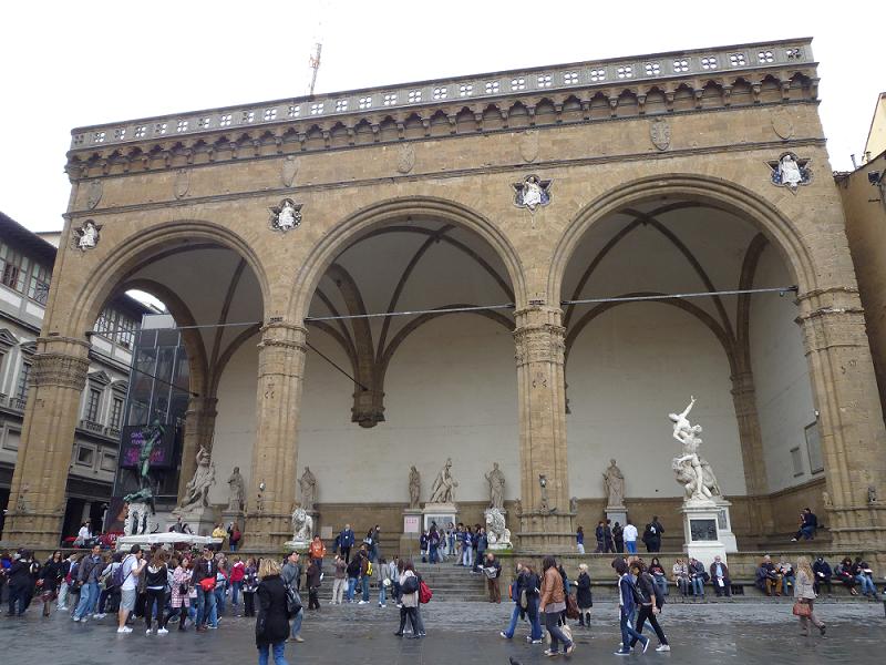 ランツィのロッジアは、シニョーリア広場の角、ウフィツィ美術館の横にあります。ドゥオモから歩いて行き広場に出ると、すぐに目につきます。10種類ほどの彫像があり、そのどれもが今にも動き出しそうです。街を歩いていて芸術品が見られるなんてさすがフィレンツェ!