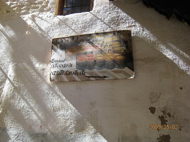 フェスの街を歩いていると一人の青年から声をかけられ、タンネリへ連れて行ってくれました。タンネリは家族ぐるみで経営しているそうです。皮製品の色は自然のもので染められている等といった説明をうけました。その後、皮製品を買うように勧められ(少ししつこかったです)バブーシュやラクダの皮製品を買いました。