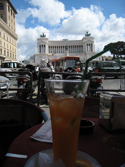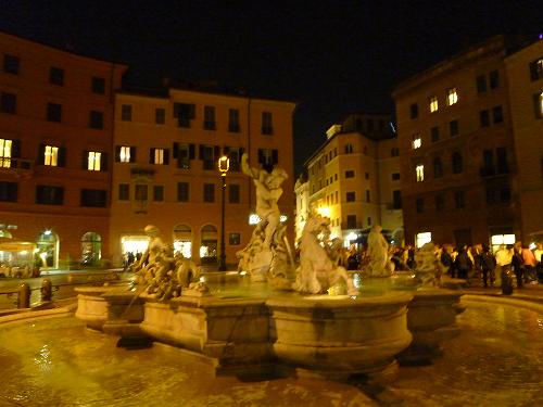 ローマに到着し、スペイン広場へ行く途中で立ち寄りました。ポポロ広場に面した場所にはレストランがあり、お腹がすいていたので夕食前にもかかわらず入り、ビールにピザをいただきました。ポポロ広場を行きかう人達を見ながらのローマでの最初の食事でした。