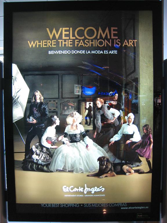 写真はマドリード空港内で撮ったエル・コルテ・イングレスの宣伝ポスターです。このデパートの地下では飲み物やお菓子等を買いました。店内には、なぜか宇多田ひかるの懐かしい曲が流れていました。1階には扇子(なかにはマドリード風の大きなものまで)が安売りされていました。