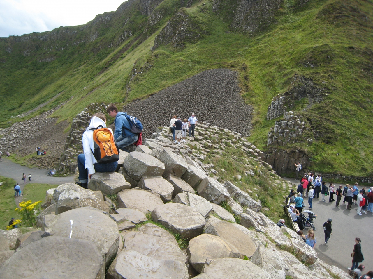 ジャイアンツコーズウェイを見たくてアイルランドへ旅行しました。ベルファストからの現地ツアー(Alan1.netサイトから申込済)を利用し、他のツアー客と共にワゴン車で移動しました。到着して六角形の岩岩に感動!!どうしてこのような形をしているのか不思議でしかたがない。