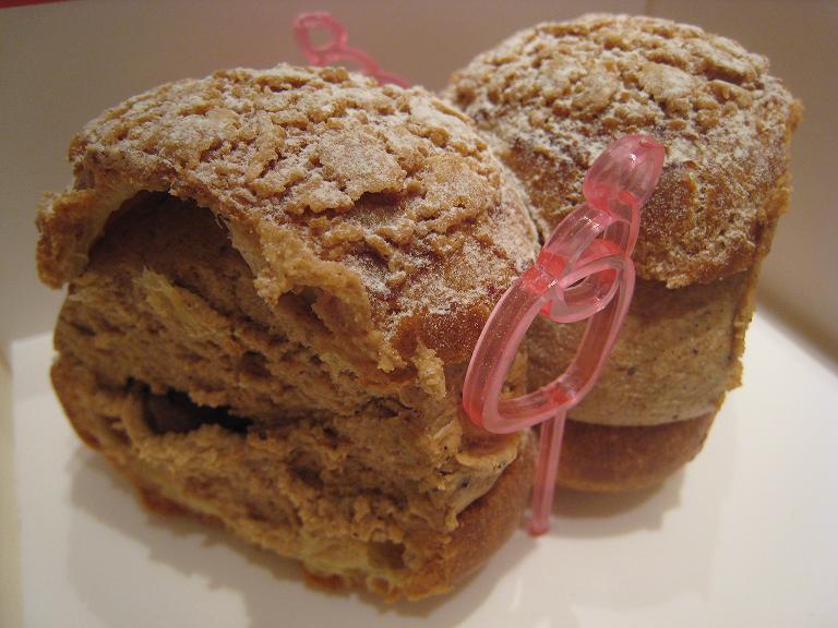 ヴィクトルユゴー通りからわき道に入ってすぐの場所に、ラ・パティスリー・デ・レヴゥがあります。お店の外観はパティスリーといった感じがしないのですが、中へ入るとケーキの入ったドーム型ケースが並んでいます。お勧めはパリ・ブレスト!テーブル席もあって店内で食べることもできますが、今回持ち帰りました。