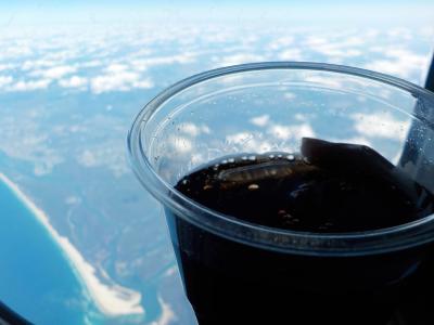 離陸後すぐに、ワイトモを飛んで、オーストラリアへ行きます。
