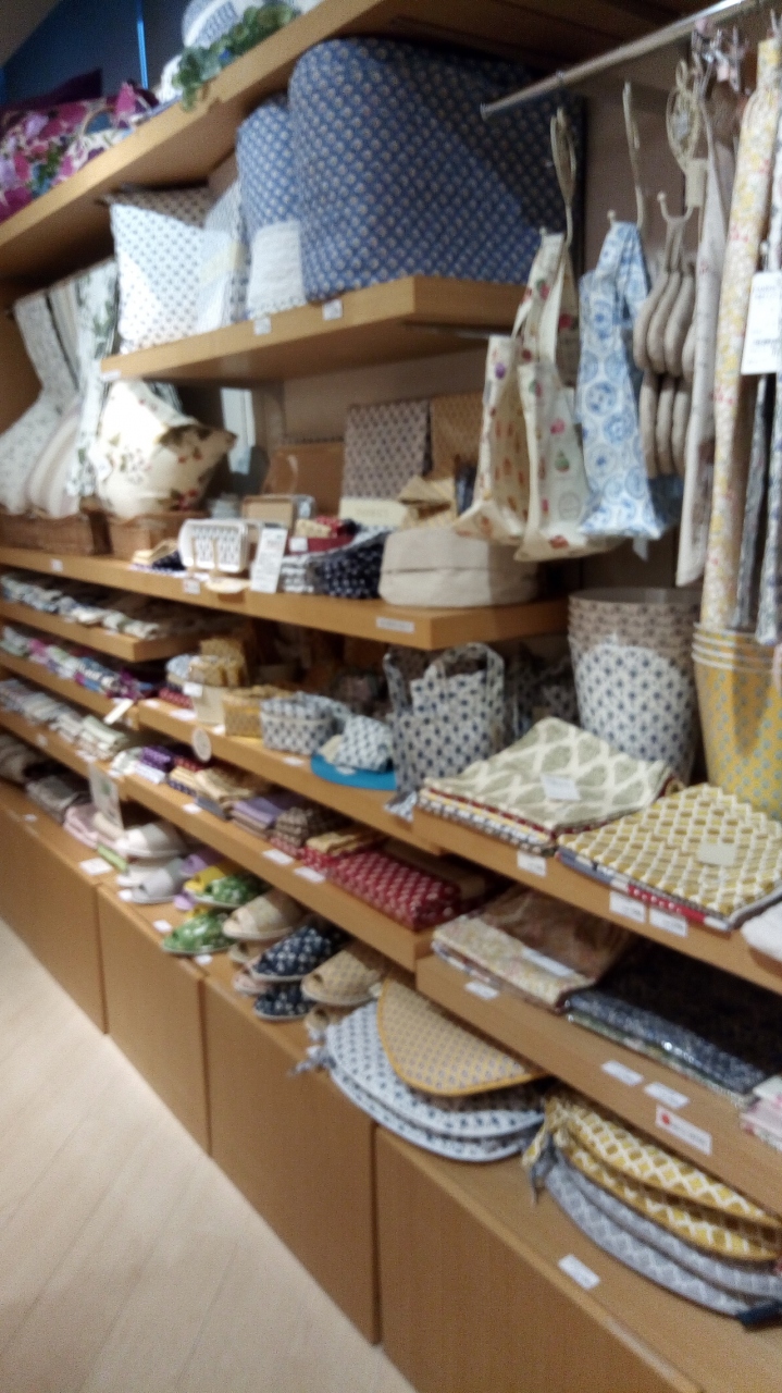 コレド日本橋の3階にあります。クッションカバーやベッド周りの商品がトータルで揃います。部屋着のような衣類もあり、エプロンやタオルもありました。
