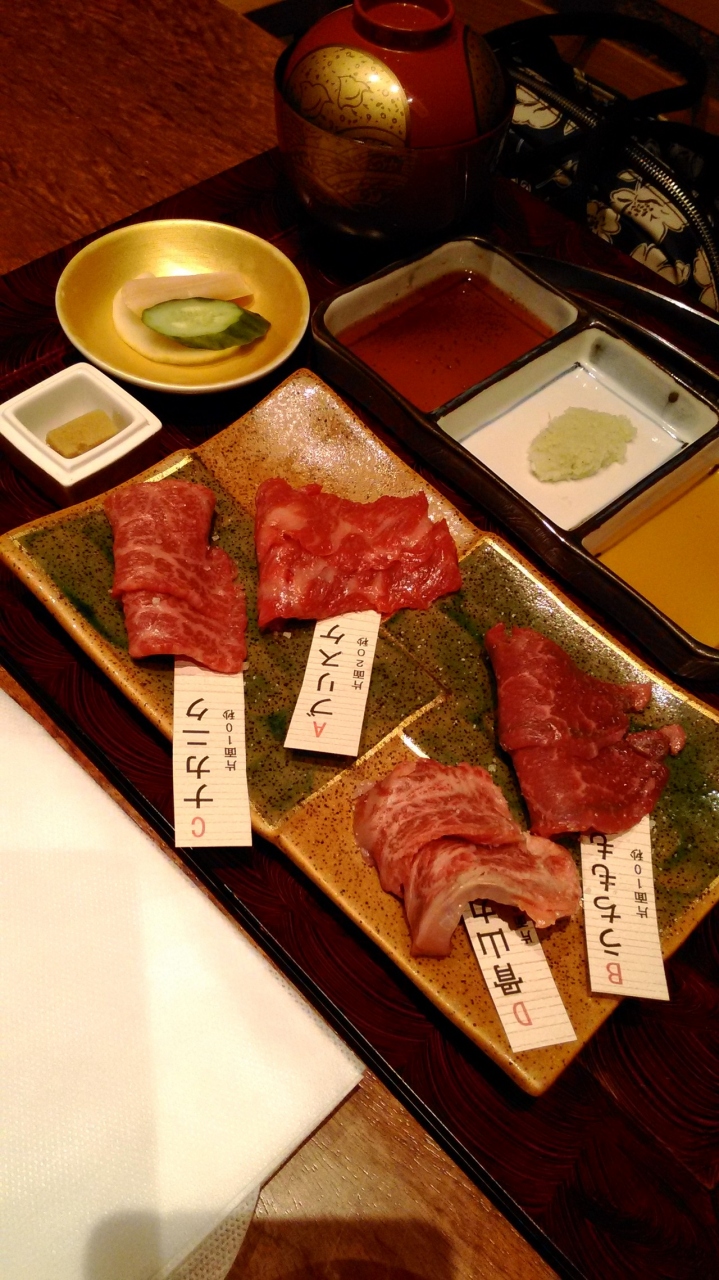 焼き肉にはそれぞれ相性のよいツケダレが添えられて、味を色々楽しめます。おしゃべりに夢中になって焼き過ぎないように気をつけて。デザートもついて、ランチはお手頃です。- 旅行時期