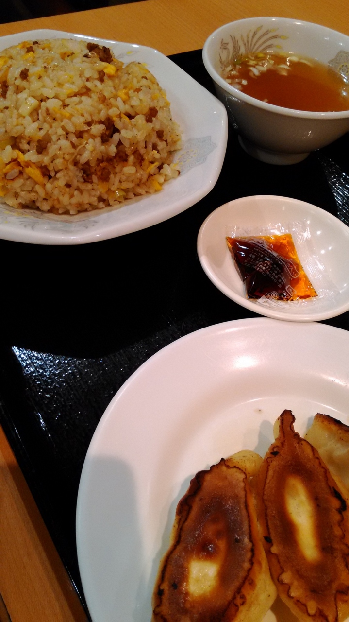 私はギョウザとチャーハンのセット。餃子は小さめサイズが好みなので、美味しく食べることができました。チャーハンはごく普通かな。