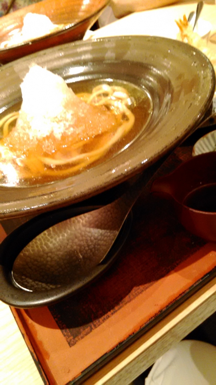 麺はかなりの太目。細麺も選べると思ったのですが、オーダーの時に聞かれなかったのでそのままにしてしまい、料理がテーブルに来てから細麺にすればよかったと後悔。通常は聞いてくれるのかしら?味は美味しかったけれど、サービス面で残念なことが多かった。- 旅行時期