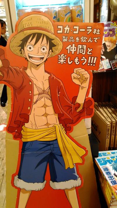 少年ジャンプといえばワンピースが思い浮かびますが、目立つパネルが出ていました。ワンピースは海外でも有名なので日本を訪れる外国人旅行者にも人気の店です。
