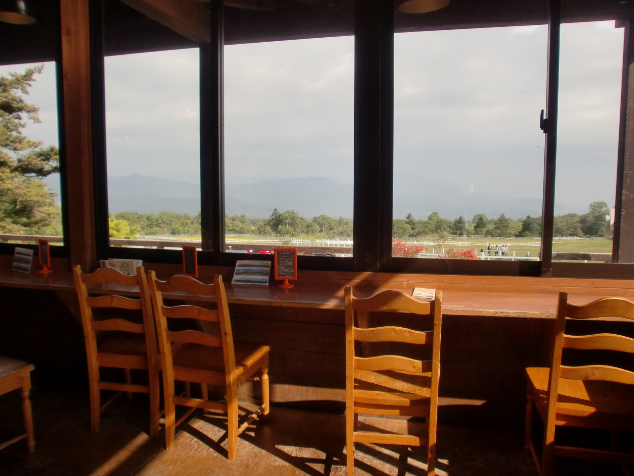 山小屋風な店舗の目の前には、きれいな山並みが見え、テラスのベンチで食べることもできます。風がふいていたので店内のカウンターにすわっていただきました。濃厚なソフトクリームはとっても美味しかった。1個400円でした。- 旅行時期