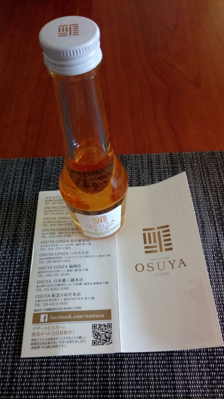 銀座三越にあるお酢の店です。デザートビネガーと言う言葉がぴったりのオシャレな瓶に入ってます。ツンとする感じは無く、少し甘味を感じるお酢は色々なフレーバーがあり、私はマスカットを購入しました。水で割ってドリンクとして飲んだり、プレーンヨーグルトのソース代わりに使いましたが、ヨーグルトの美味しさがアップして、満足でした。