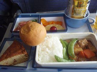 食事は2種類から選べます。アルコールは無料。ただ食事の提供が遅い。テレビモニターがあるので映画・音楽を楽しめます。- 旅行時期