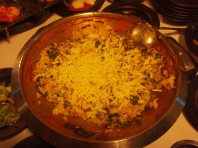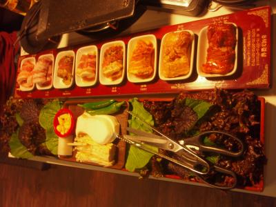 テジクッパの通りに入る道のすぐ左側にあります。店内は禁煙ですが奥のトイレの前に喫煙所があります。8種類楽しめるサムギョプサルを注文。最初はバンチャンが用意されますがそのあとはビュッフェスタイルでおかわりを!個人的には高麗人参がおいしかったです。味噌味は焦げやすいので注意を。このお店ではサムギョプサルを注文すると海鮮鍋もセットで出てきます。ちょっとからいです。締めはチーズポックンパ。おいしいですよ!